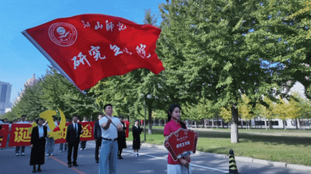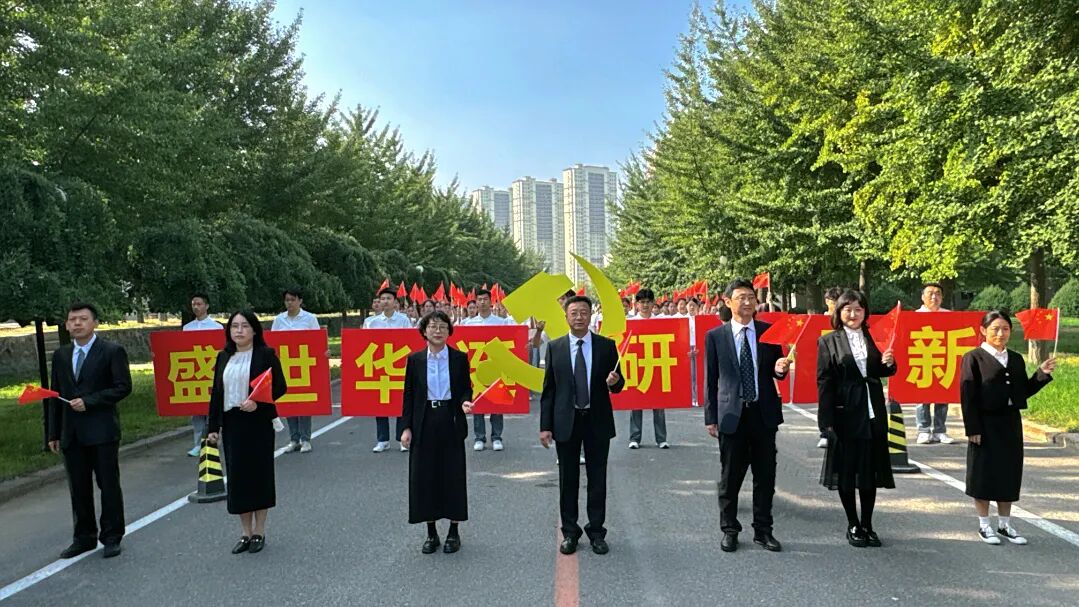 开幕式上,研究生学院方阵统一着装,步伐铿锵,口号嘹亮——“博雅鞍师,精彩无限;活力研院,奋勇争先”瞬间点燃全场。“盛世华诞,研途日新”正是研究生学子对祖国华诞的献礼,彰显了研院学子的爱国之情与蓬勃朝气。