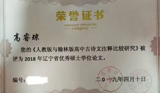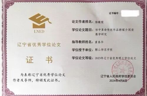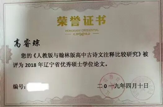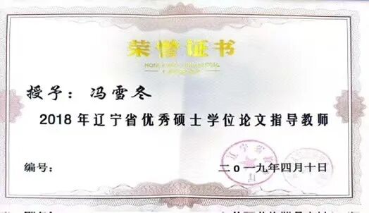 研究生毕业论文获辽宁省优秀硕士学位论文奖